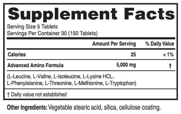 Advanced Amino Formula tablets are free from soy, dairy, and gluten. They are vegan and made with non-GMO ingredients. The formulation is designed for efficient utilization by the body, resulting in minimal metabolic waste.